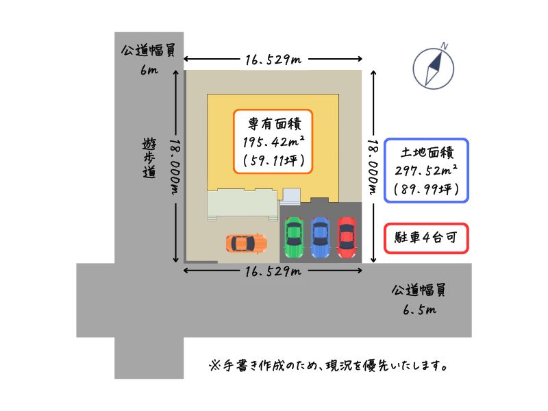 接地状況: 南側 幅6.5mの公道に16.52m接道