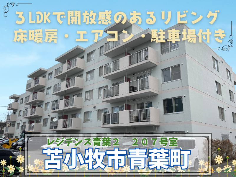 物件名: 【レジデンス青葉2】青葉町の3LDKマンション🌈床暖房・エアコン・駐車場1台😊